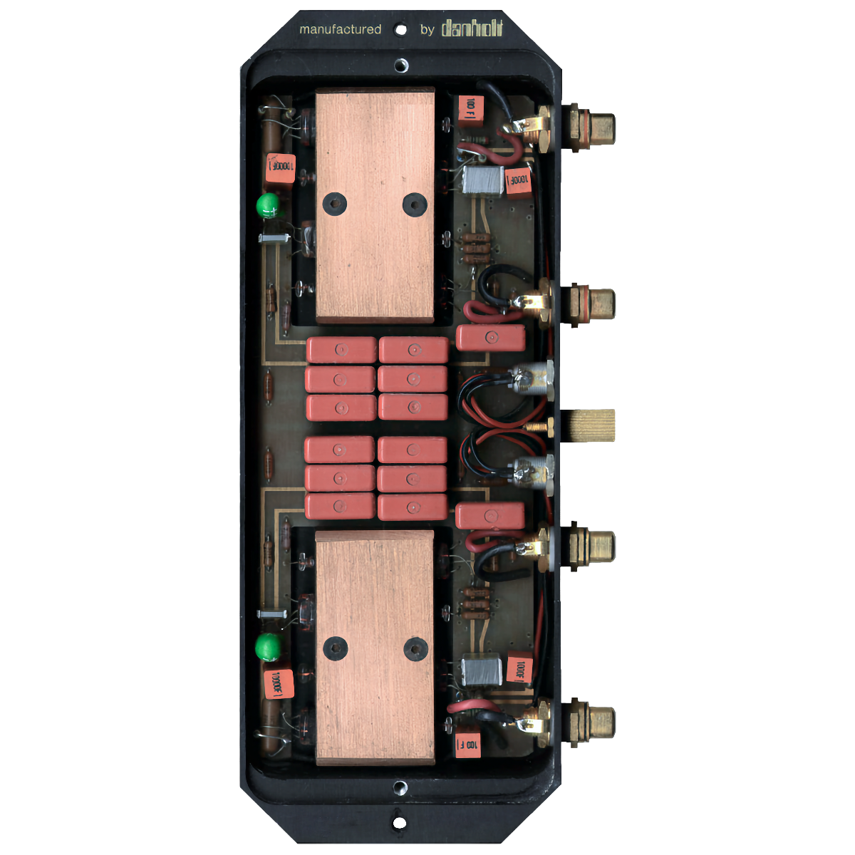 Dafür wurde eine spezielle Kapselung der insgesamt 8 Verstärkerröhren entwickelt. Kupferblöcke mit Dämpfungselementen aus Carbonfasern zur hermischen und mechanischen Stabilisierung bringen klangliche und messtechnische Vorzüge.