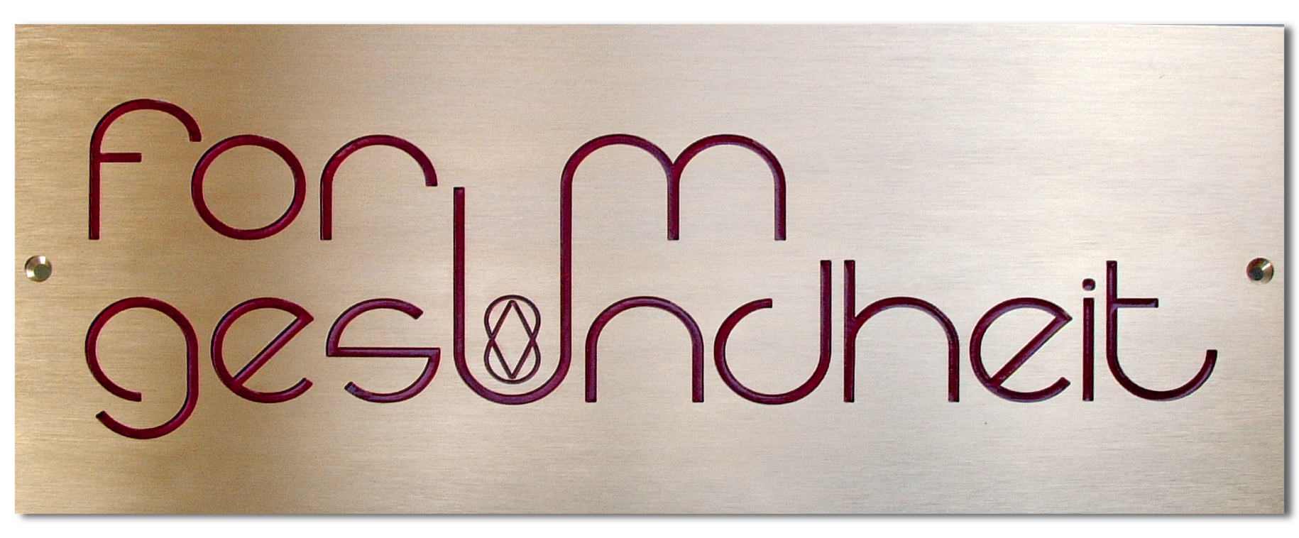 So sind neben den unmittelbar erkennbaren Worten Forum (Plattform für offenen Dialog) und Gesundheit, auch die Worte „Form“ und „um“ sowie ein „Und“ (mittig in Gesundheit) assoziierbar.